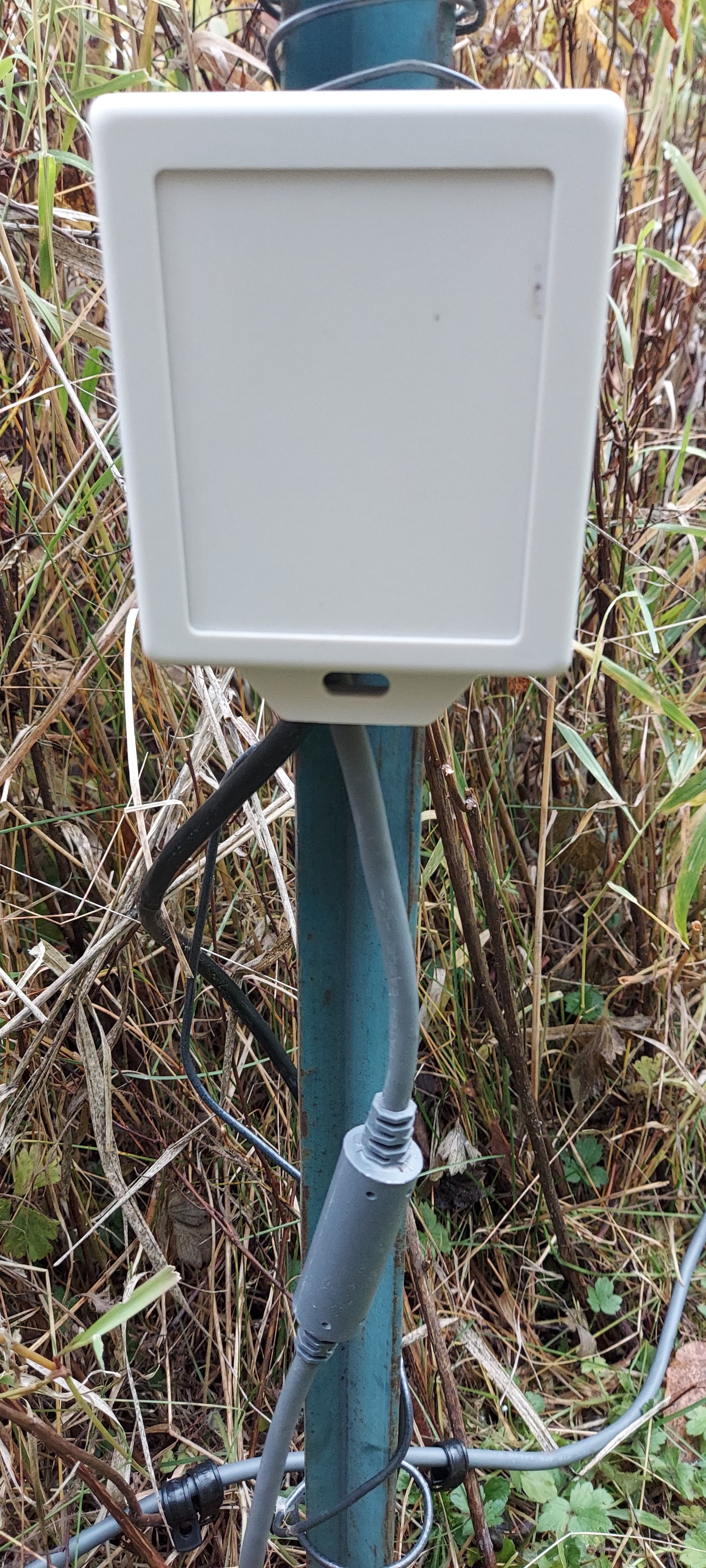The app told me that the best spot was about 200 feet, line of sight, from the house. To make it even more interesting, line of sight includes a pond, so we had to go around the edge of the pond. I measured a few times, and kept coming up with about 280 feet.