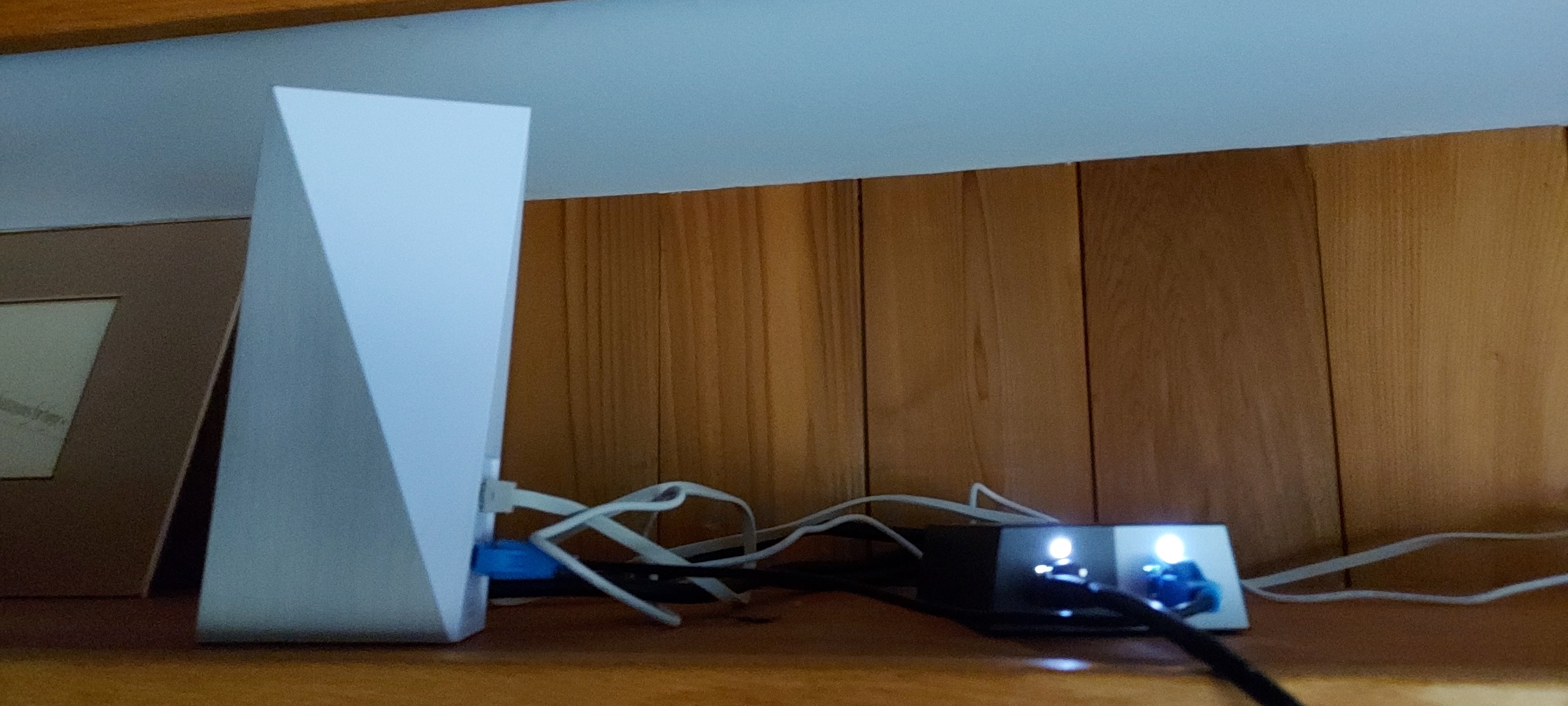 All in all, this required some labor, but we’ve been up and running for two weeks now, and speeds and stability are great. I’ve got a 3 piece mesh wifi system on the back side, so I know I lose speed, but it seems to work plenty well. (I just noticed 2 bars of 4G in the pc